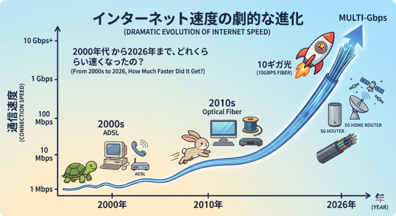 私たちの生活を運ぶ「乗り物(回線)」は、この20年で驚くほどの進化を遂げました。